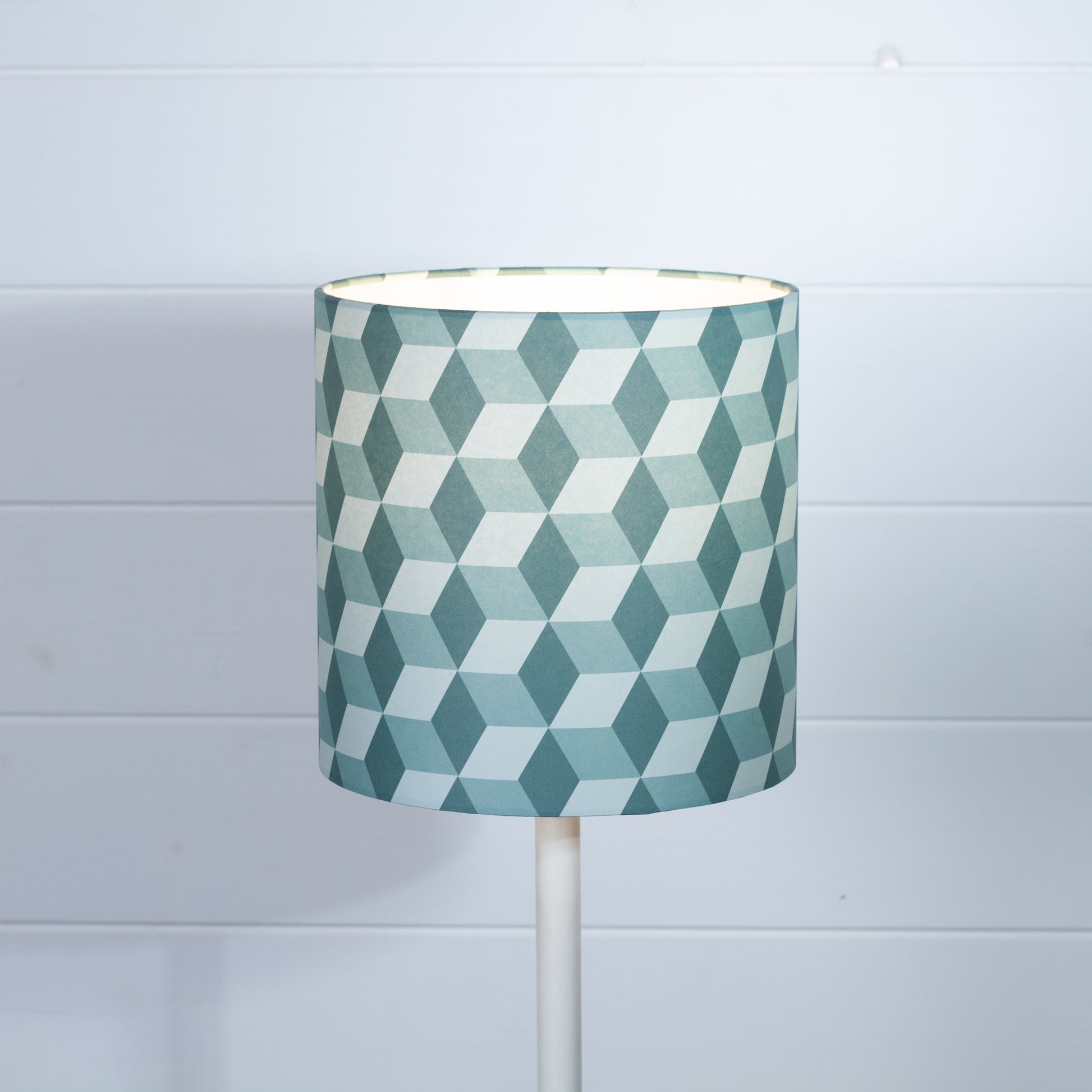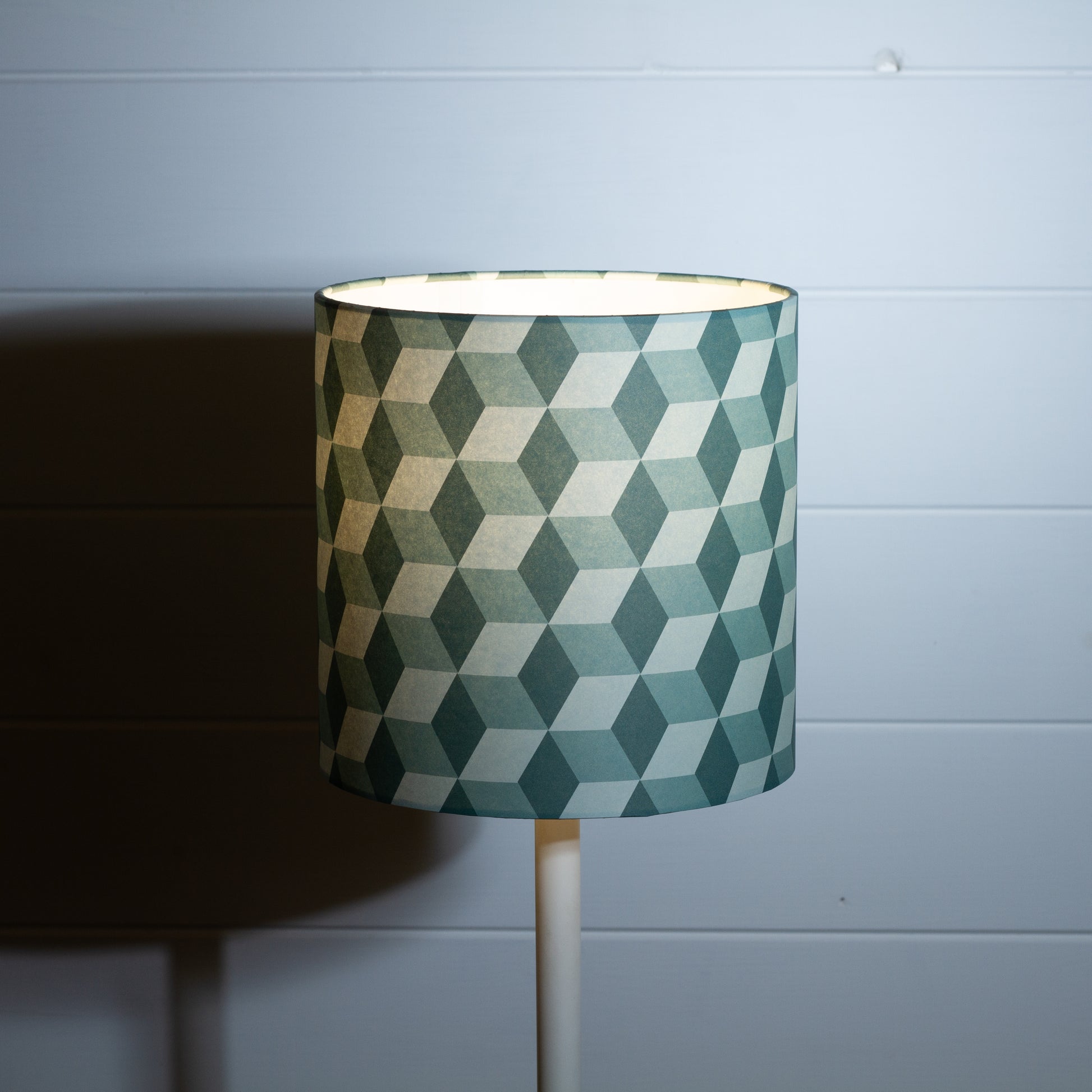 Cubes Geometric Print Drum Lamp Shade 20cm(d) x 20cm(h) ~ Green