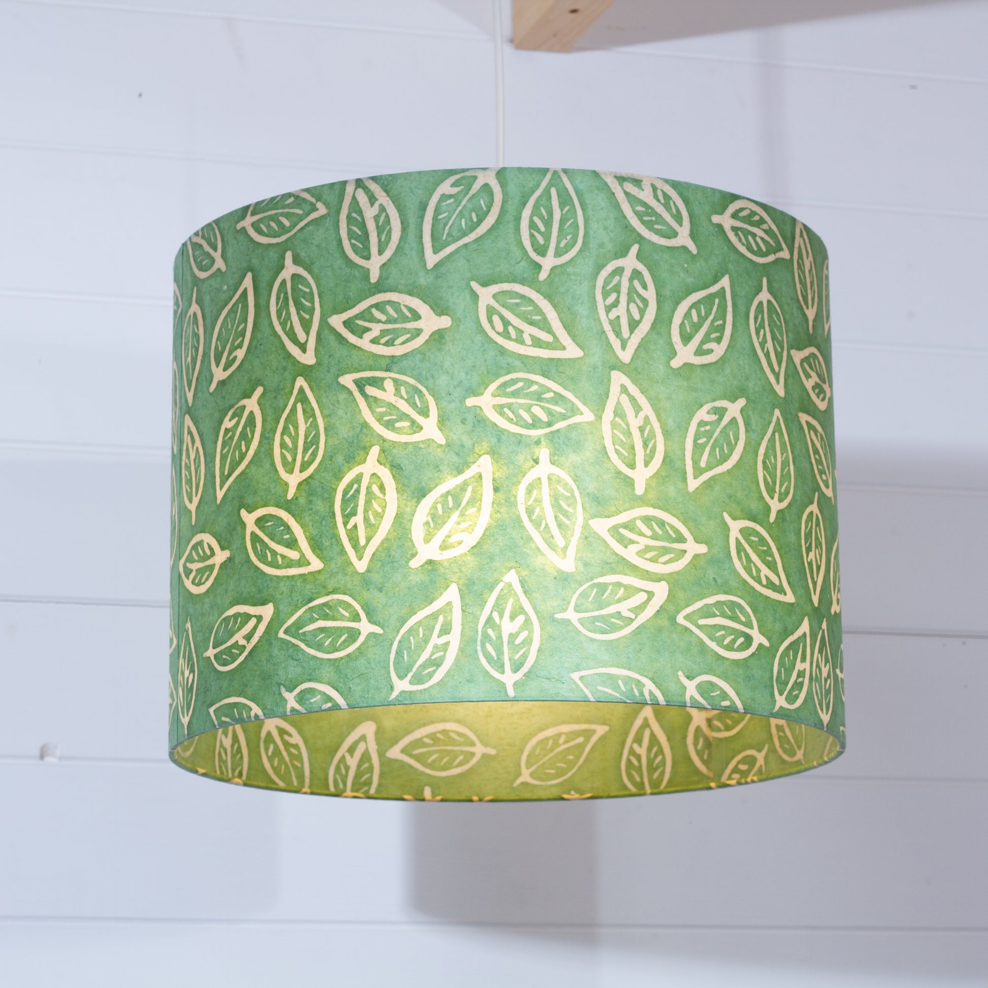 Drum Lamp Shade - P29 - Batik Leaf on Green, 40cm(d) x 30cm(h)