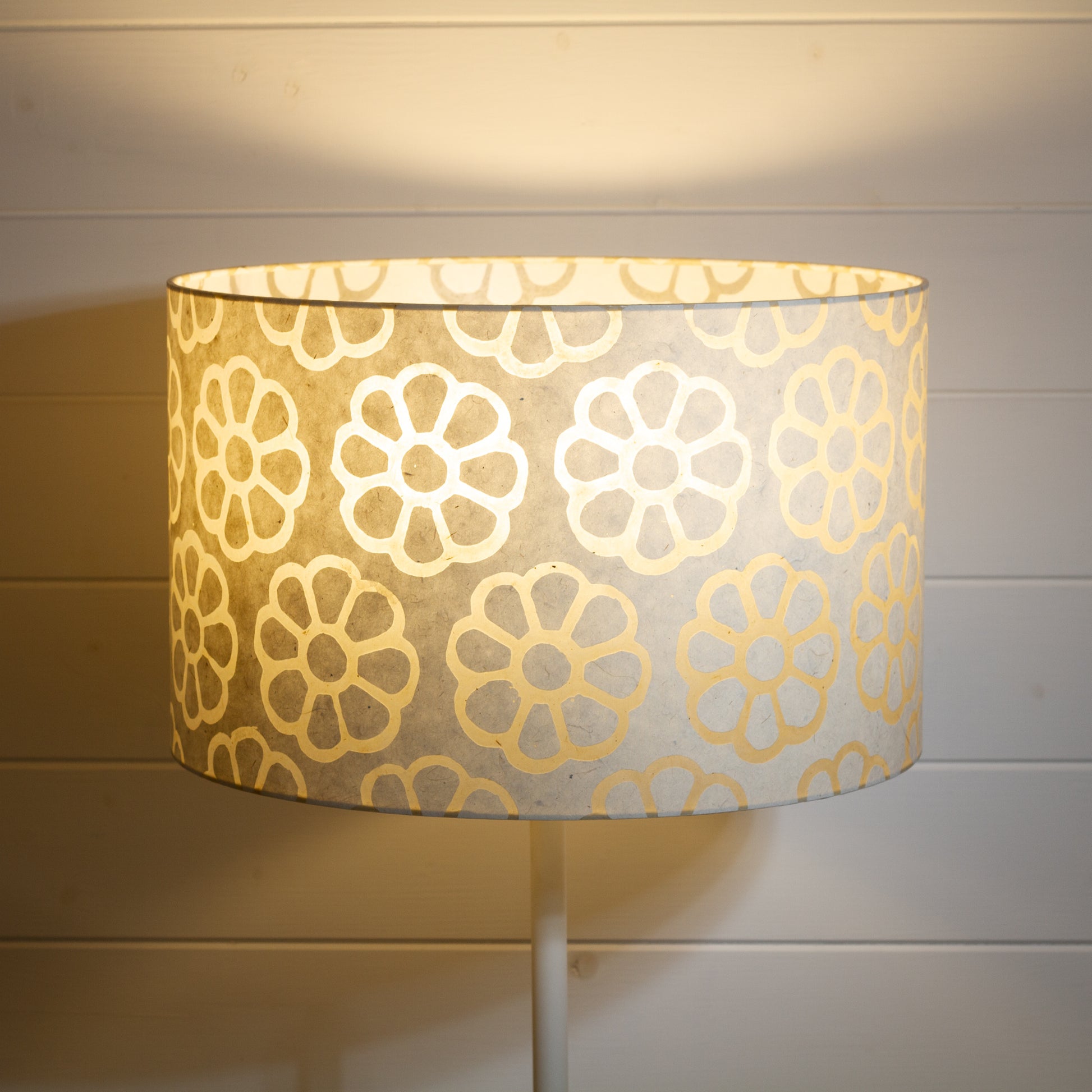 Drum Lamp Shade - P17 - Batik Big Flower on Natural, 40cm(d) x 25cm(h)