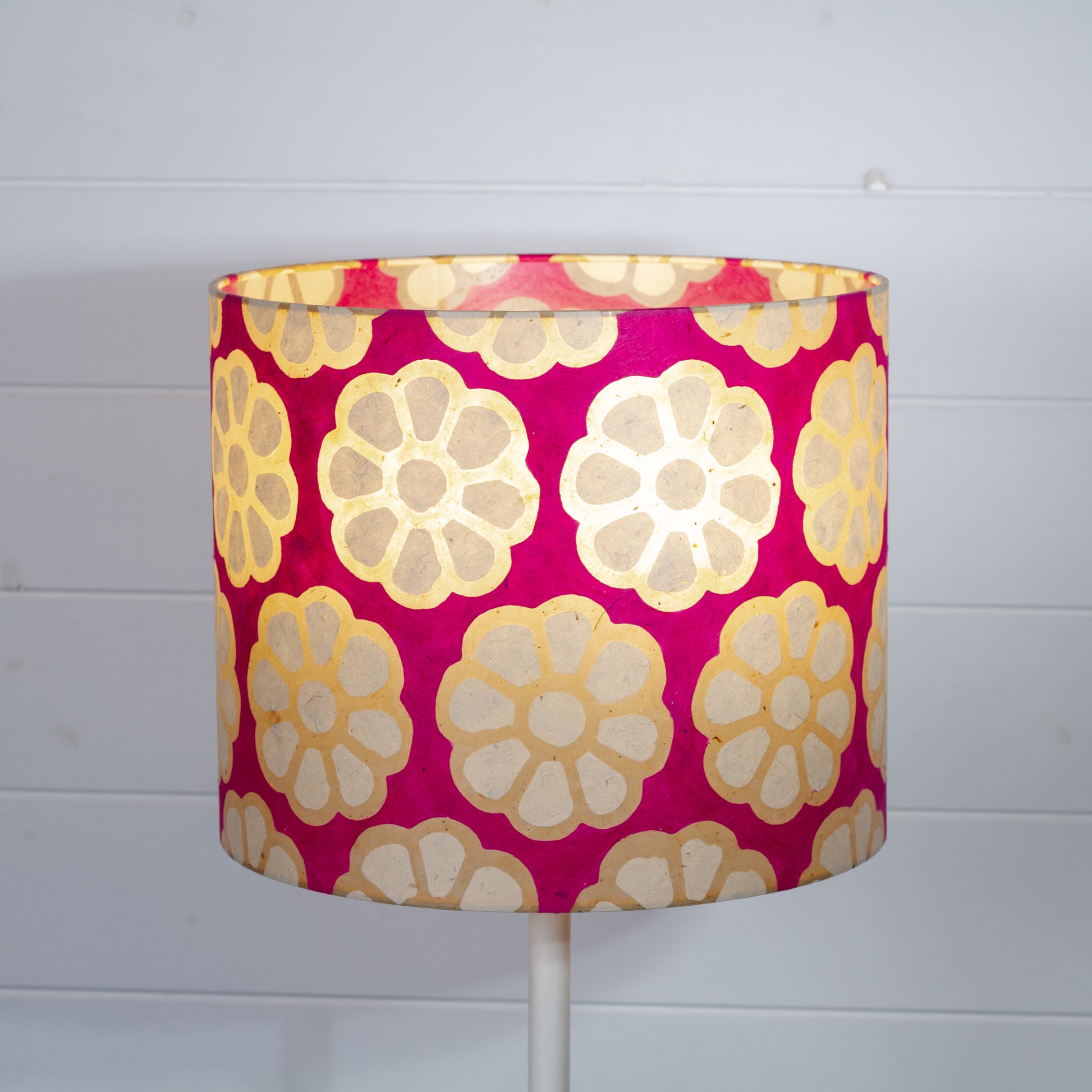Drum Lamp Shade - P22 Batik Big Flower on Hot Pink, 30cm(d) x 25cm(h)