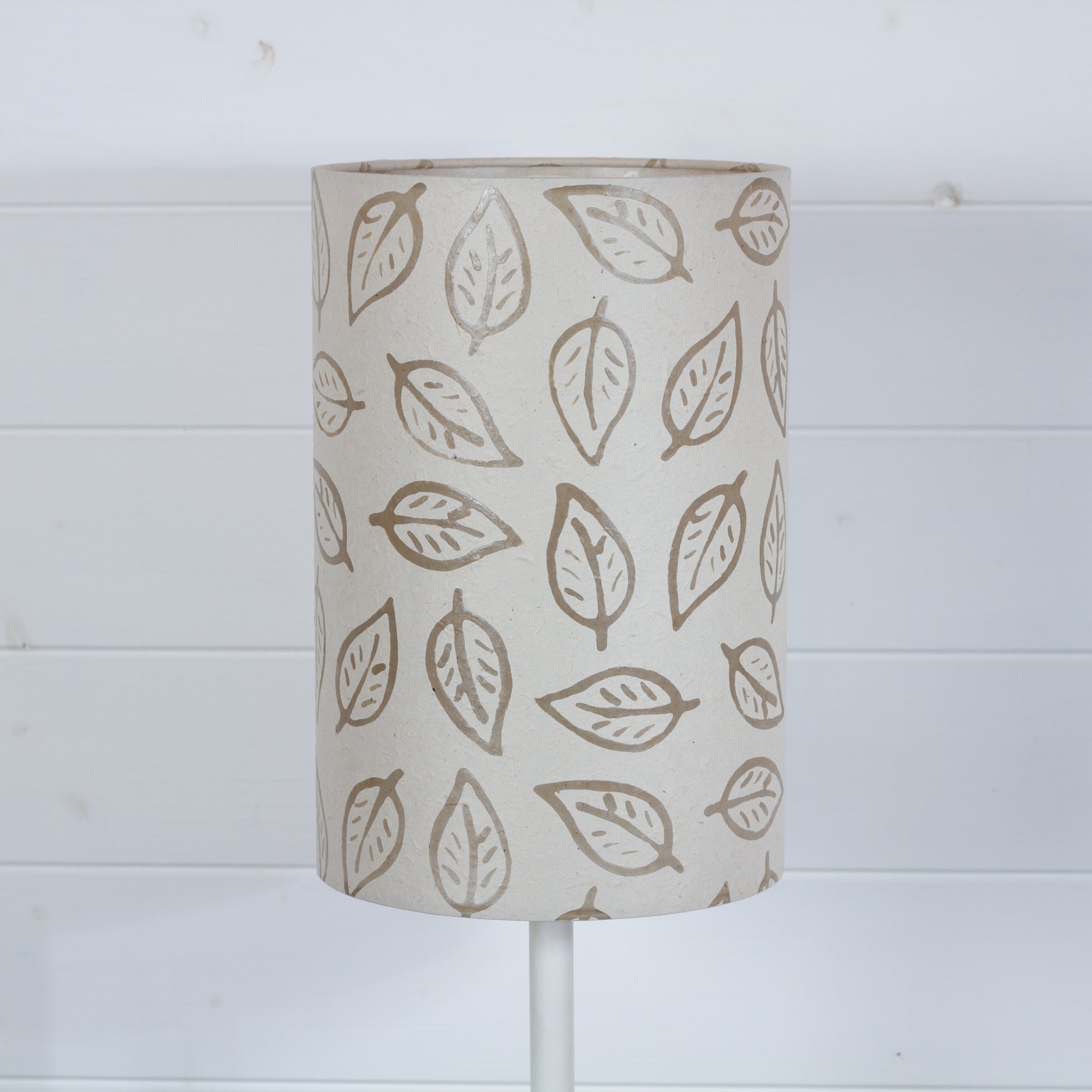 Drum Lamp Shade - P28 - Batik Leaf on Natural, 20cm(d) x 30cm(h)