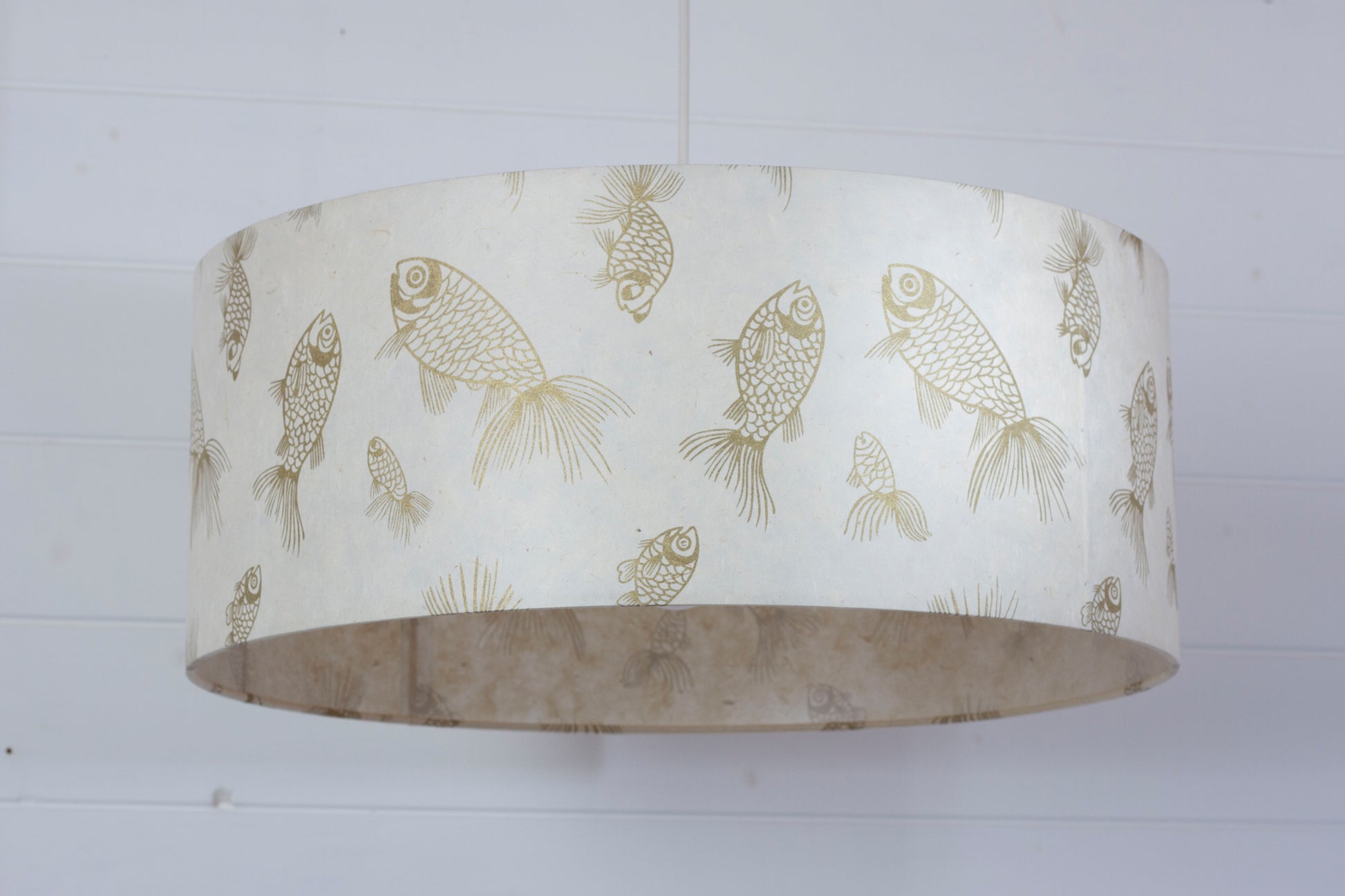 Drum Lamp Shade - P40 - Gold Fish Screen Print on Natural Lokta, 50cm(d) x 20cm(h)