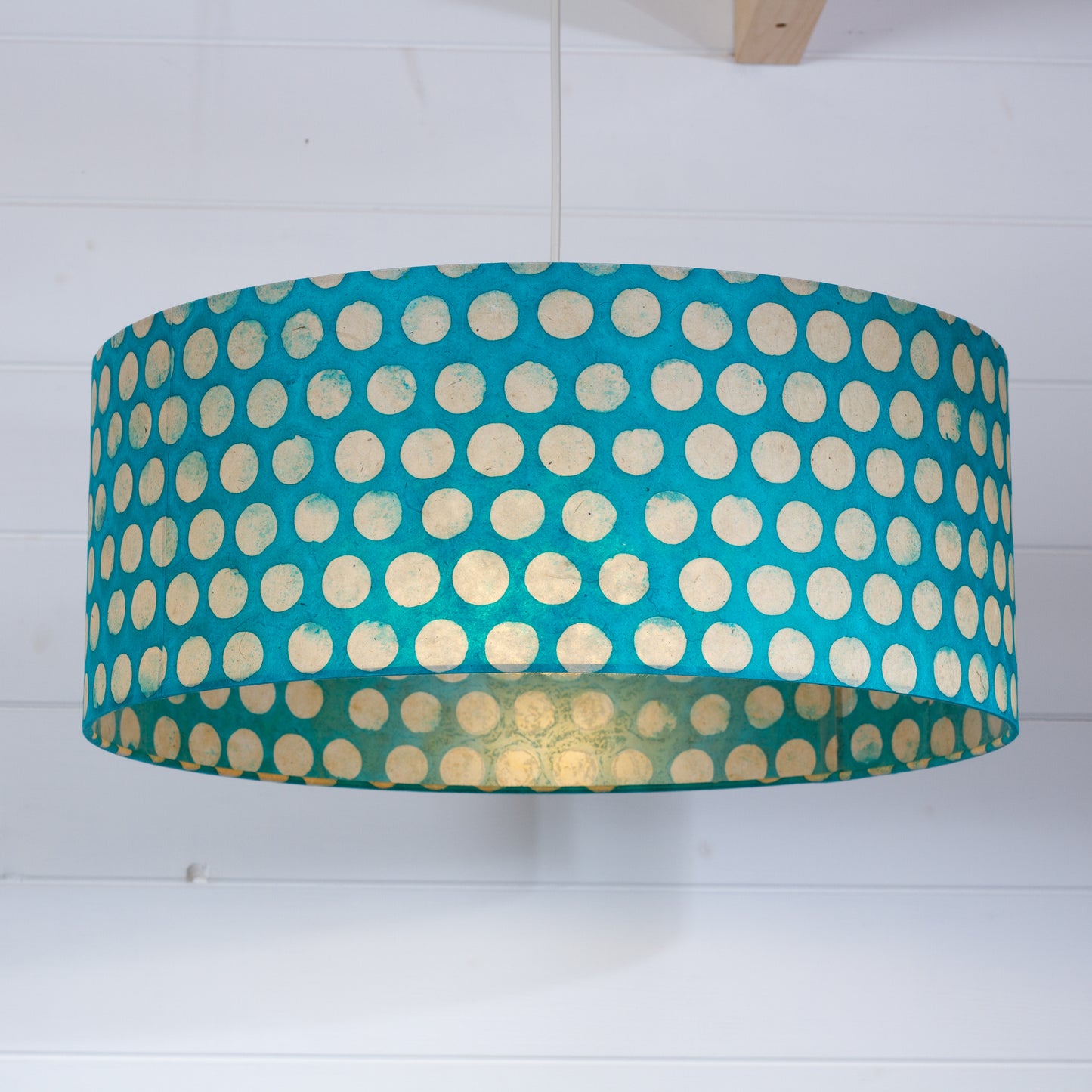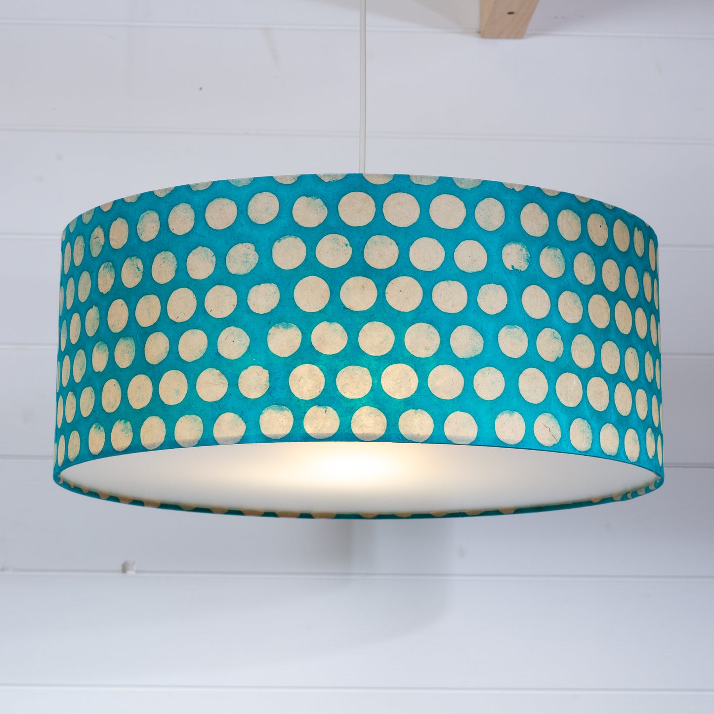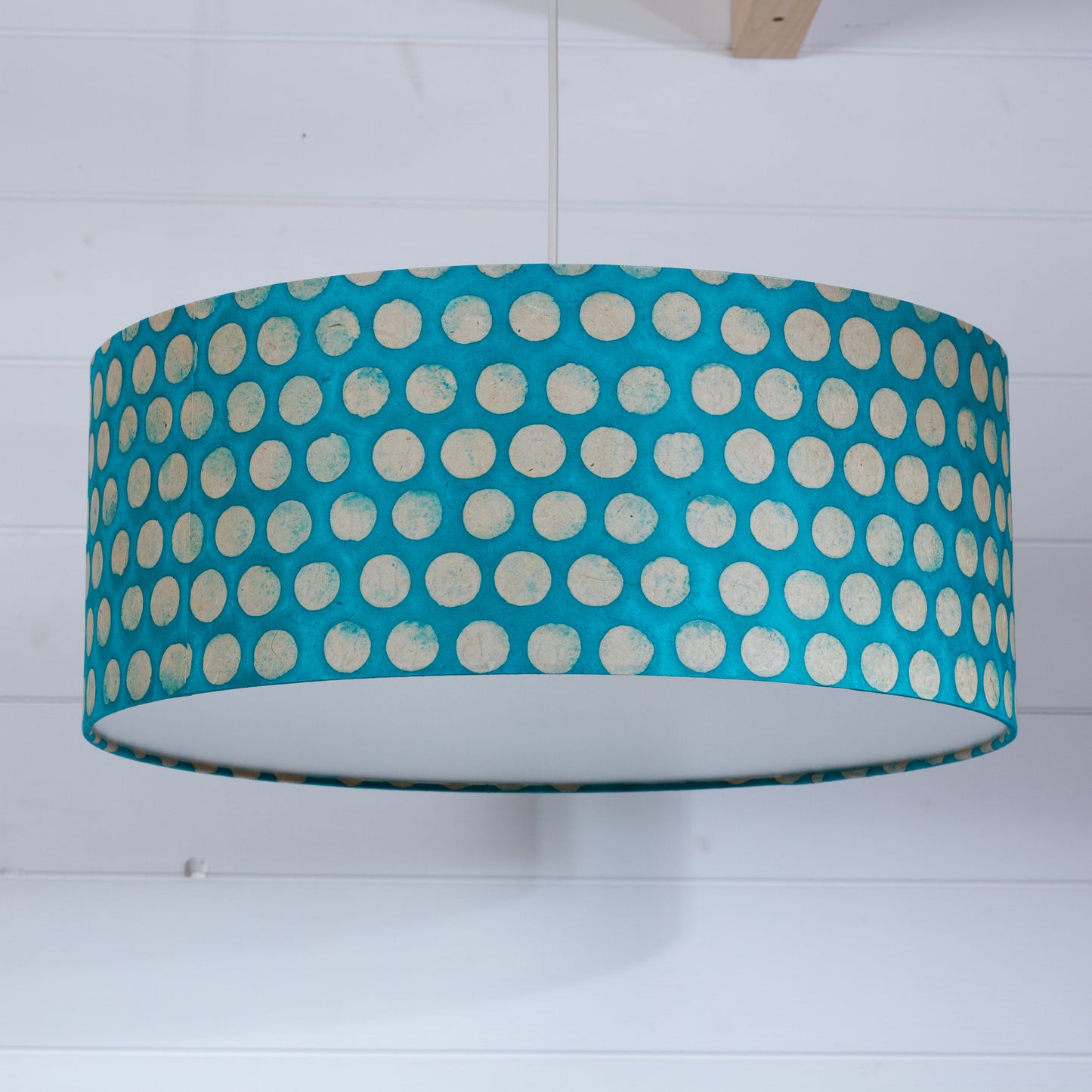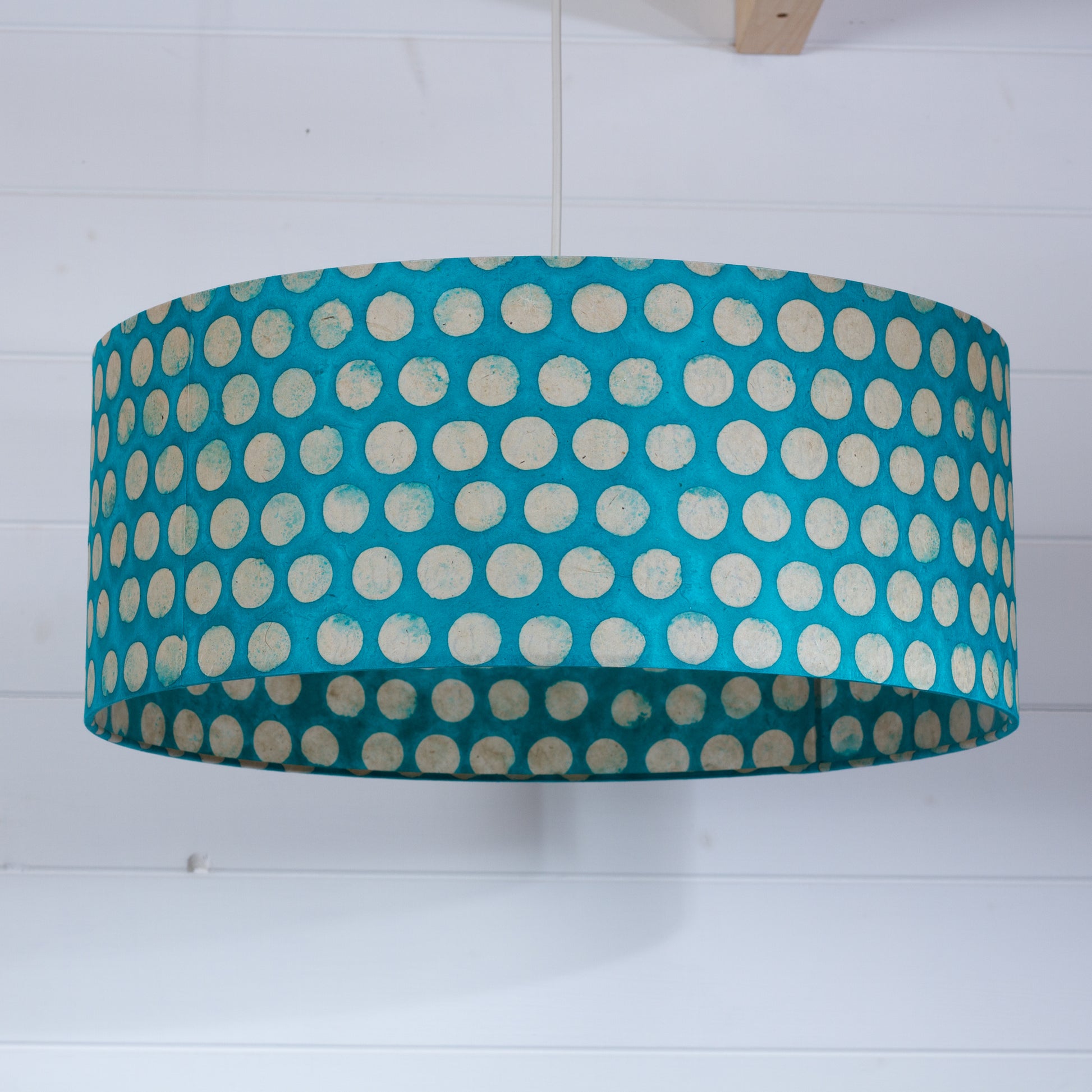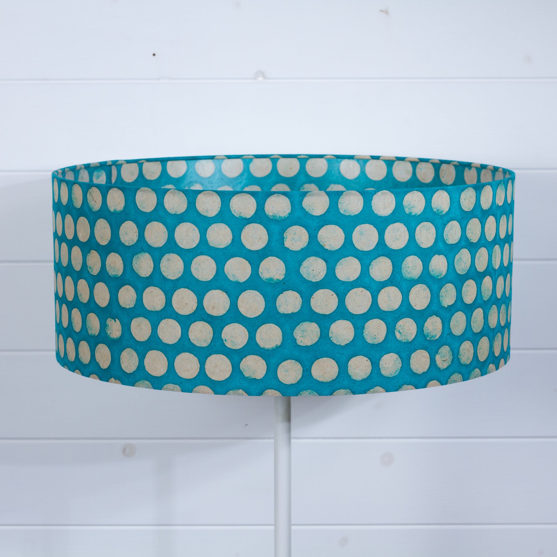 Drum Lamp Shade - P97 - Batik Dots on Cyan, 50cm(d) x 20cm(h)