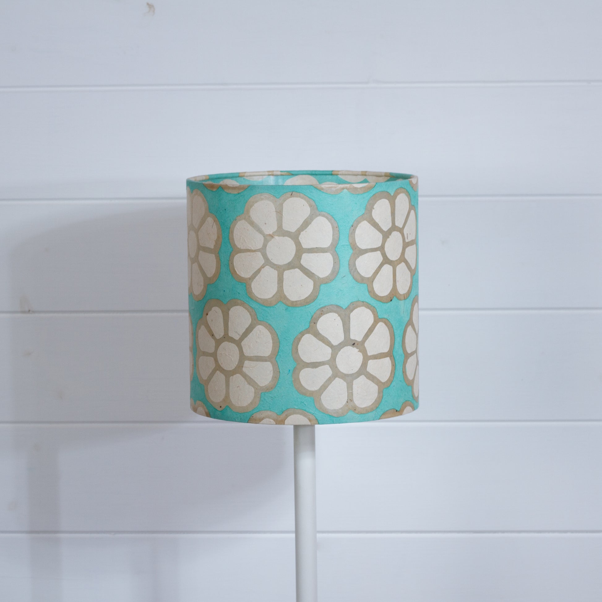 Drum Lamp Shade - P98 ~ Batik Big Flower on Seafoam, 20cm(d) x 20cm(h)