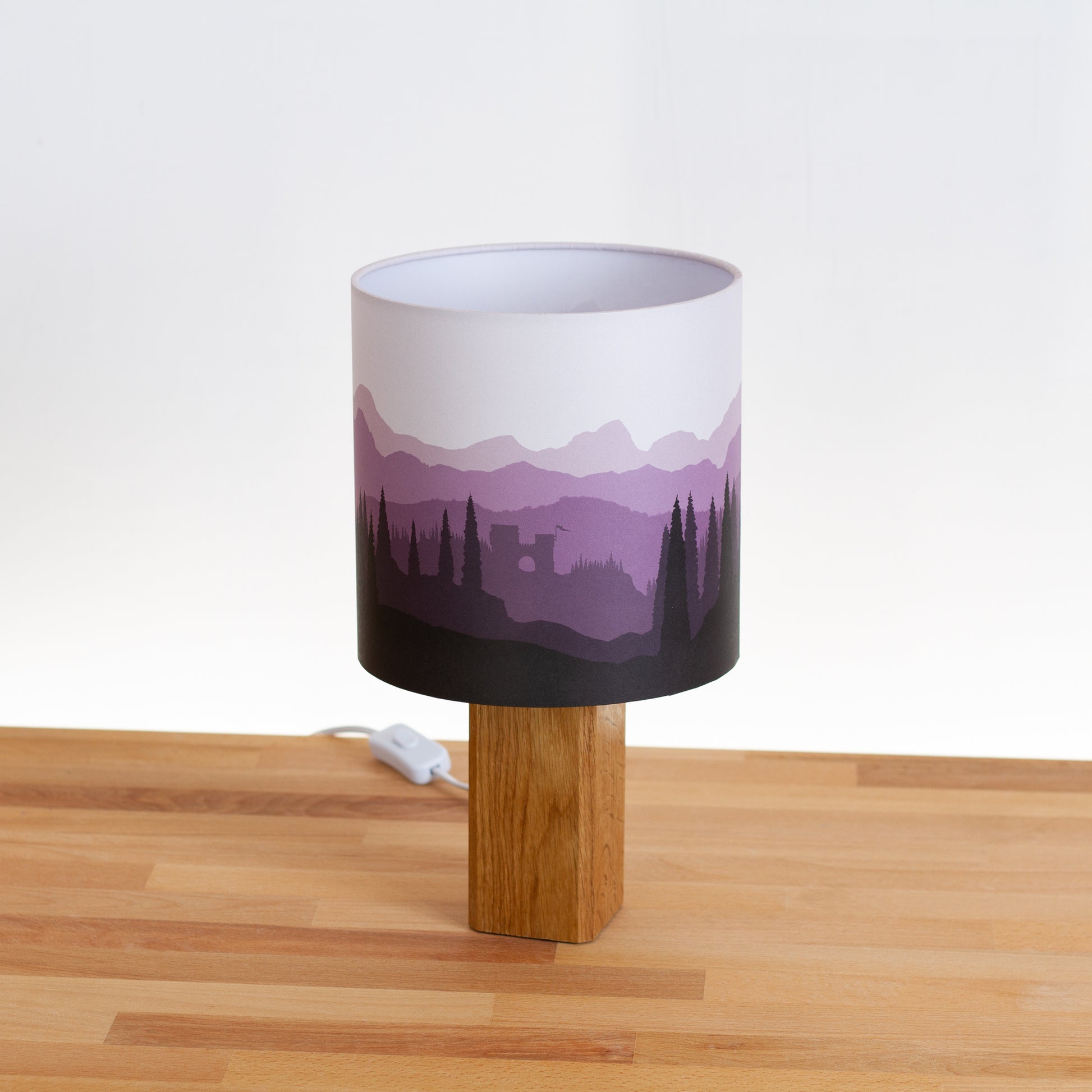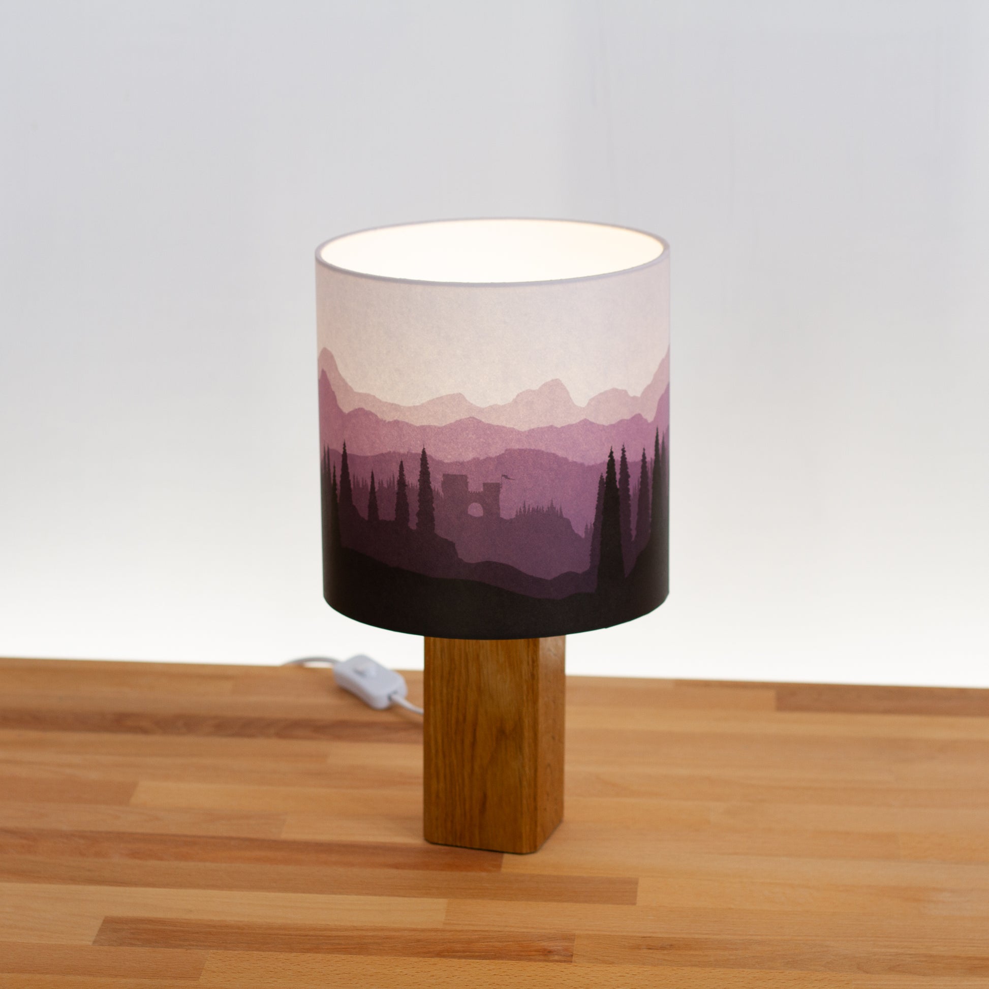 Forest Landscape Print Oak Table Lamp - Purple (D03)