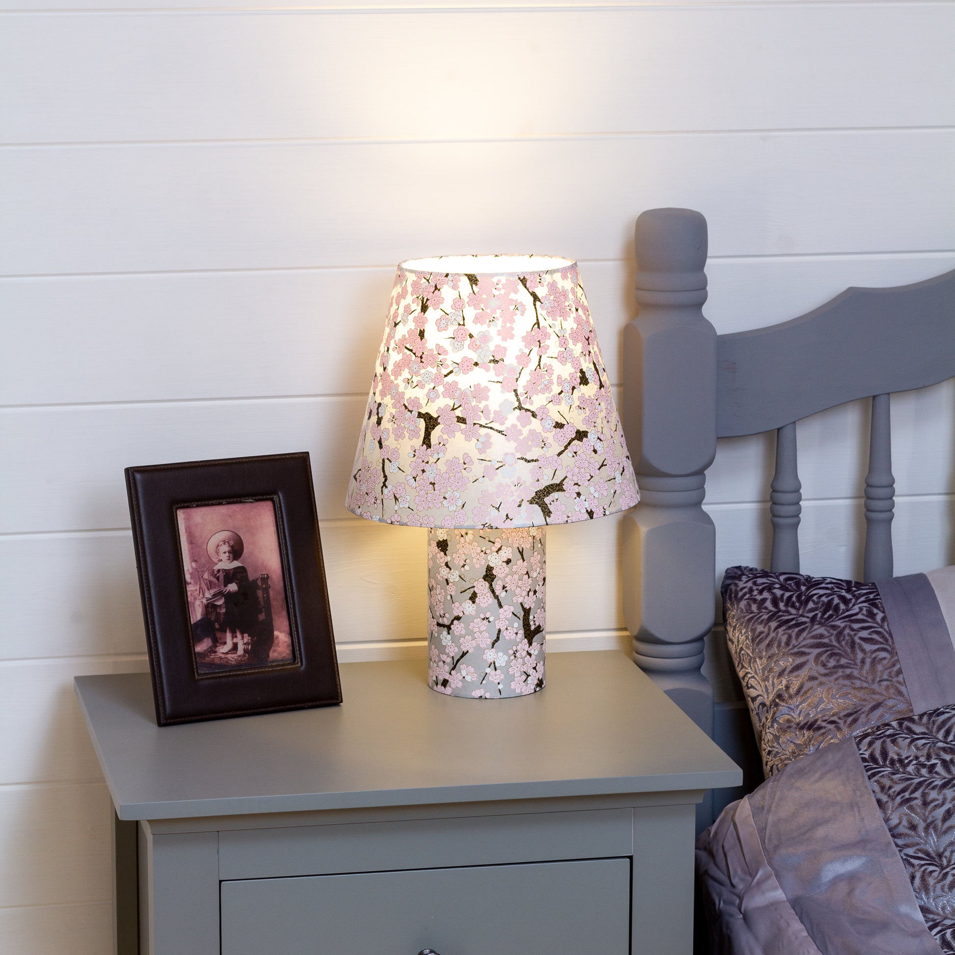Matching Table Lamp (Small) with Conical Lamp Shade ~ Pink Cherry Blossom on Grey (W02)