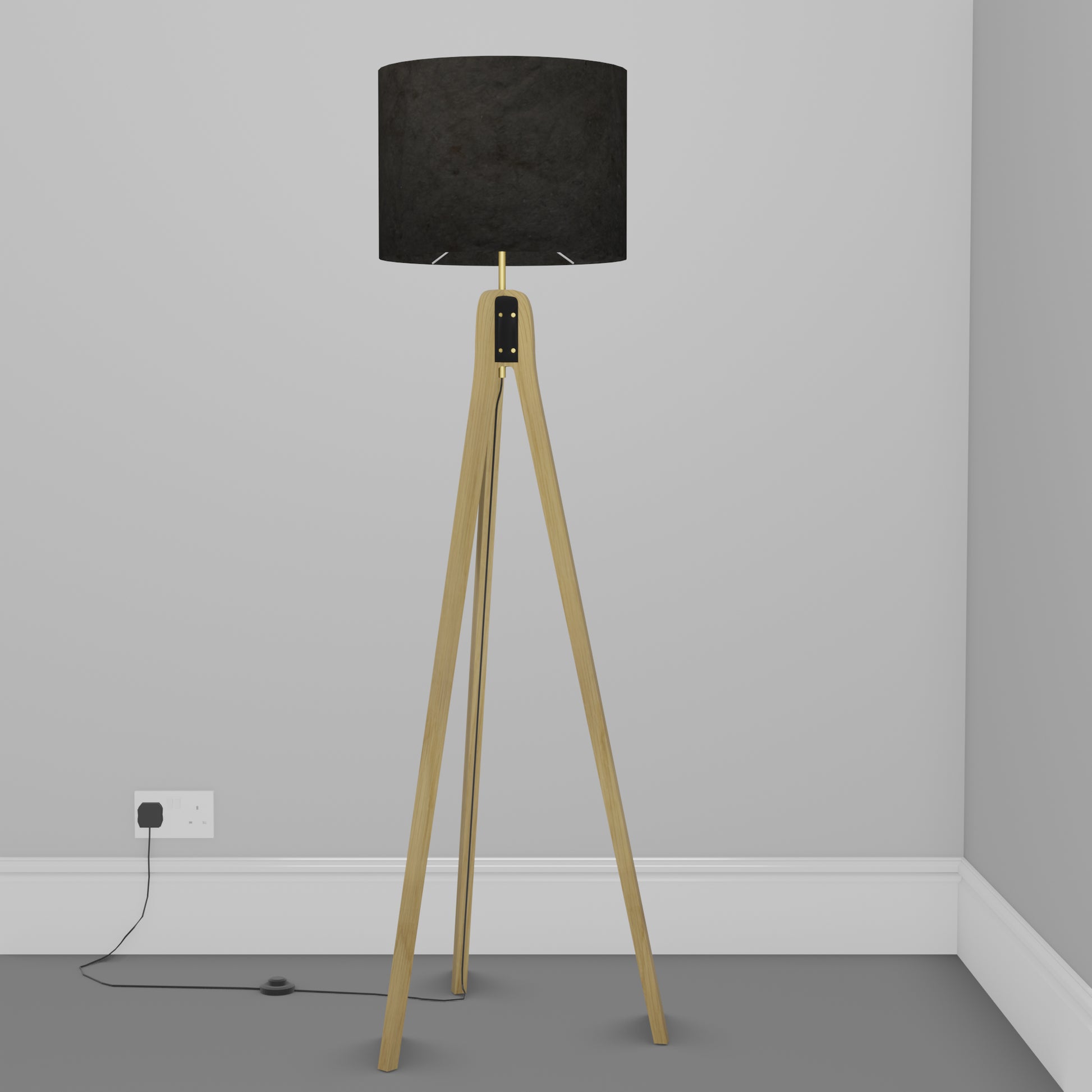 Oak Tripod Floor Lamp - P55 - Black Lokta