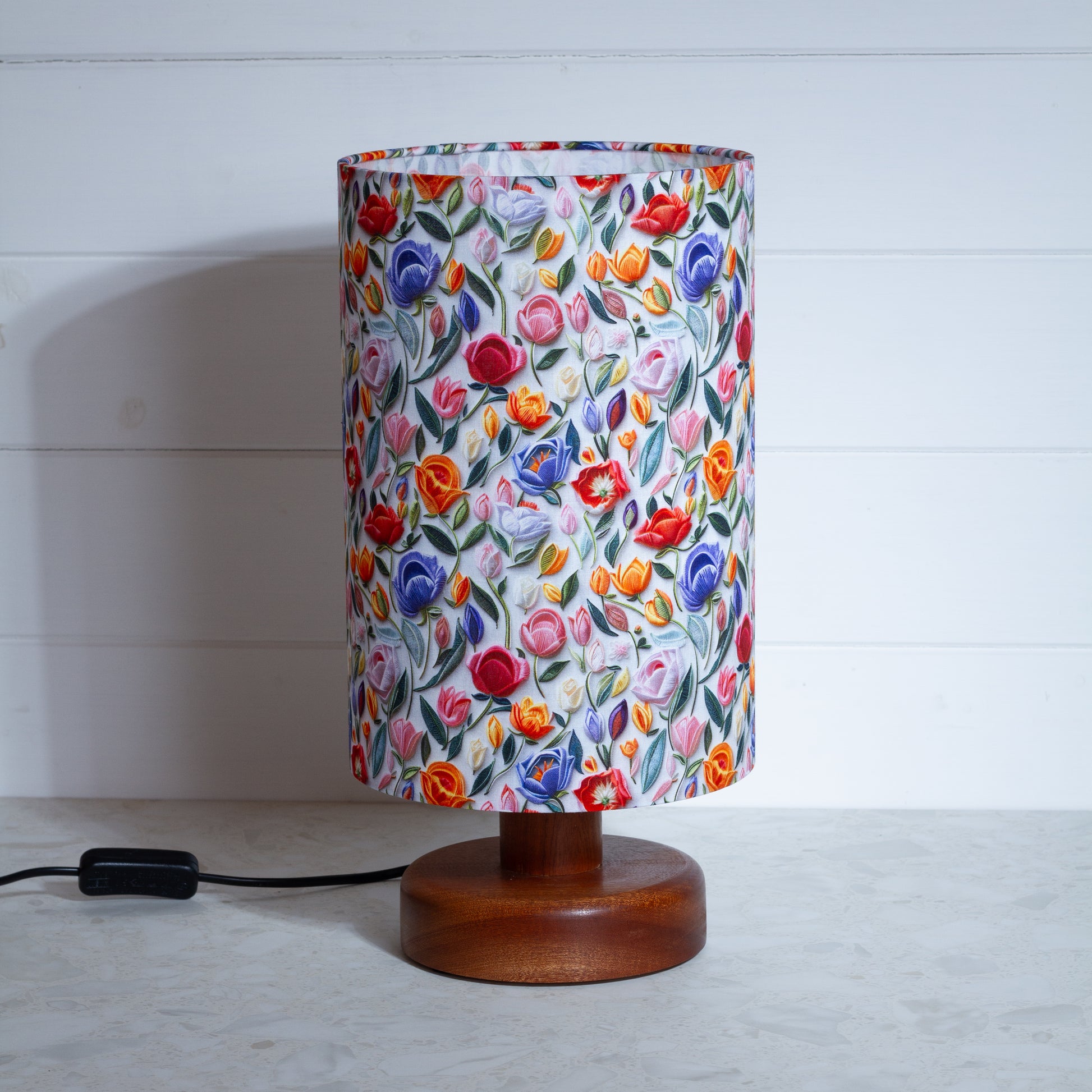 Round Sapele Table Lamp with 20cm x 30cm Lamp Shade in F150 ~ Tulip Stems