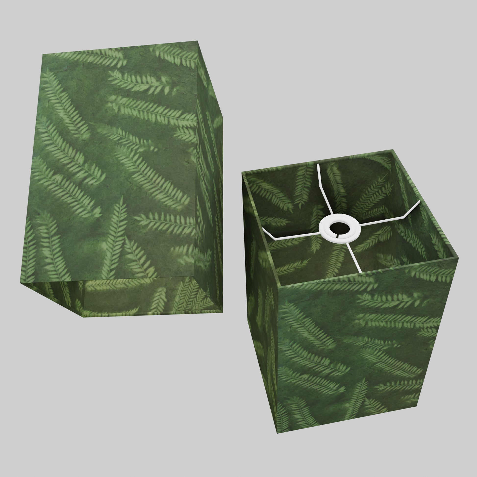 Square Lamp Shade - P27 - Resistance Dyed Green Fern, 20cm(w) x 30cm(h) x 20cm(d)